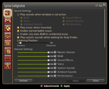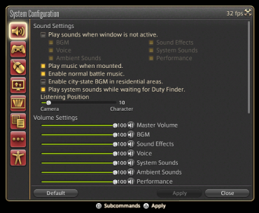 | Data to Be Saved | ・Display Settings ・Sound Settings ・Input Device Settings ・Accessibility Settings ・Shared Macros ・Miscellaneous Data (Cutscene Settings) |