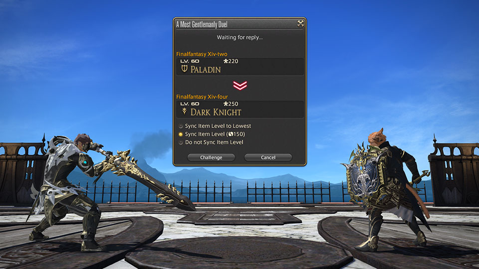 See more details.Updates aplenty are coming to dueling. Players will now be able to sync item levels with their opponents, guaranteeing that all future duels will have a little extra spice to them. What's more, recast timers and status ailment resistances will now be reset at the start of duels, ensuring a level playing field for both fighters.
