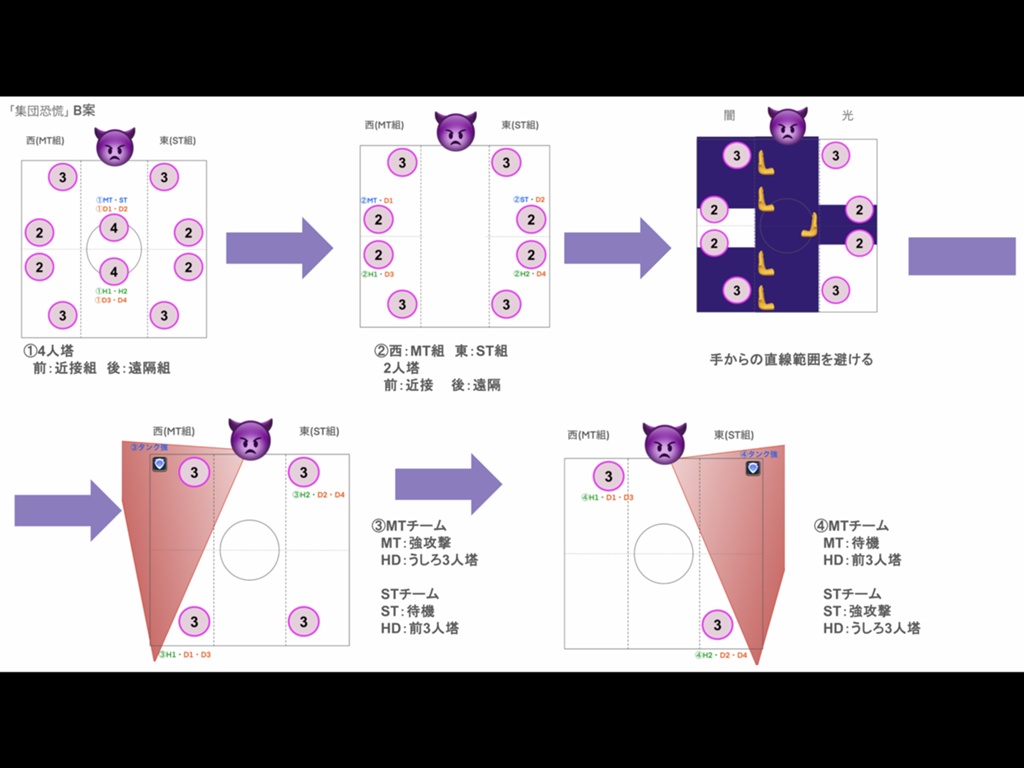 STチーム:ST→タンク強攻撃 他→うしろの3人塔