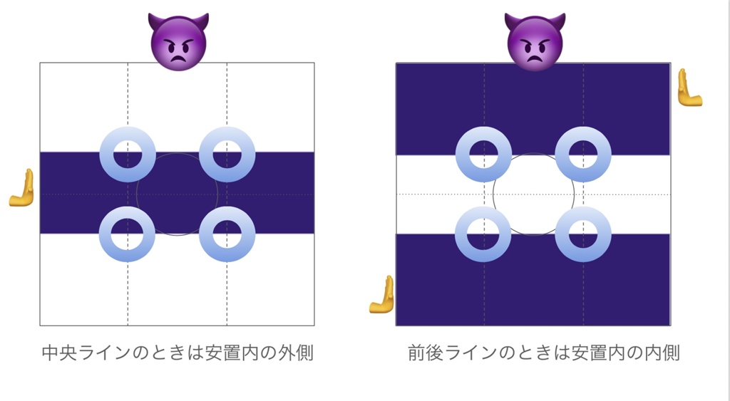 →持ち場の中で反復横跳びしながら円範囲捨て、塔踏みのイメージ