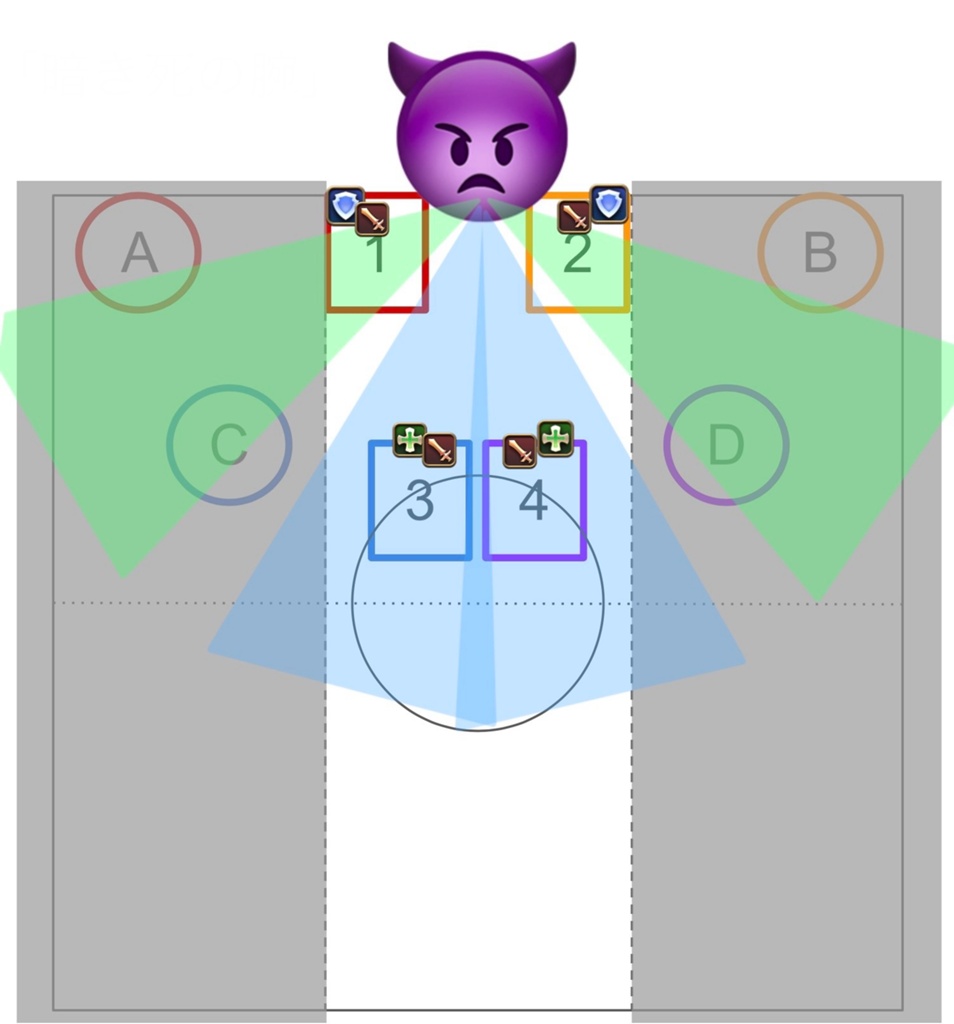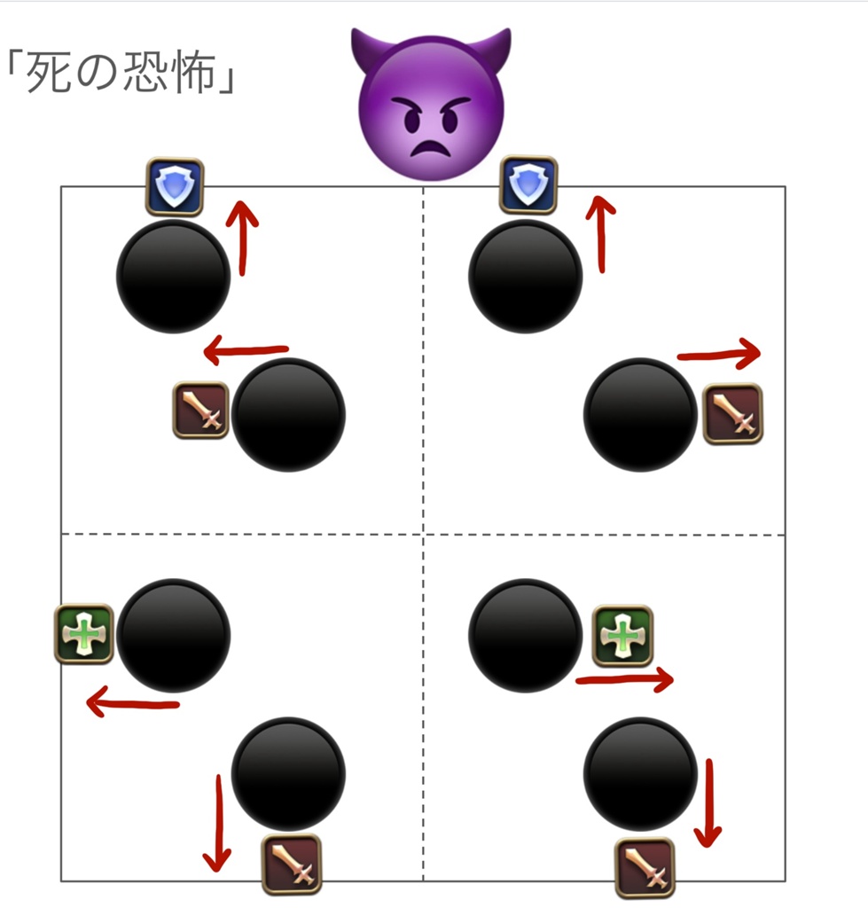 ■死の恐怖(お手手散開(●の近くで1人1本、外側へ誘導)