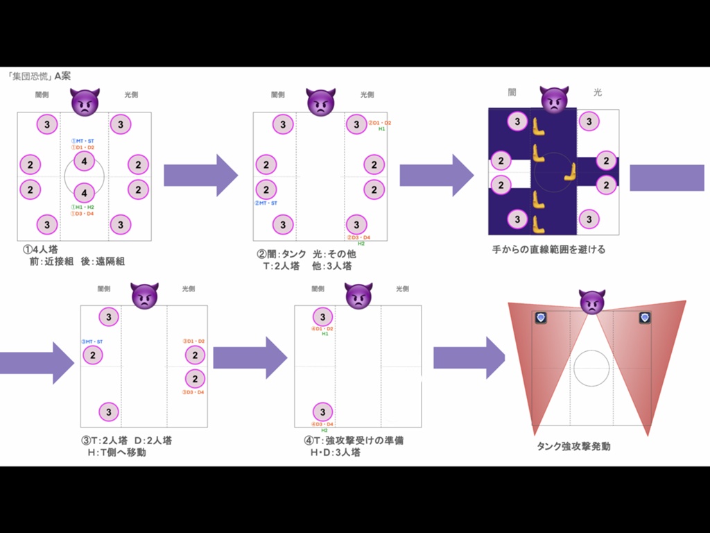※塔踏み・タンク強後4秒「被魔法ダメ増加」デバフ付与→消えてから次の塔へ