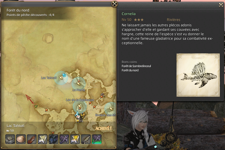 Once you've caught 5 and Fisher's Intuition pops up, then you'll switch bait to rainbow spoon lure to catch the Cornelia (with patience active, !!!, powerful hookset).