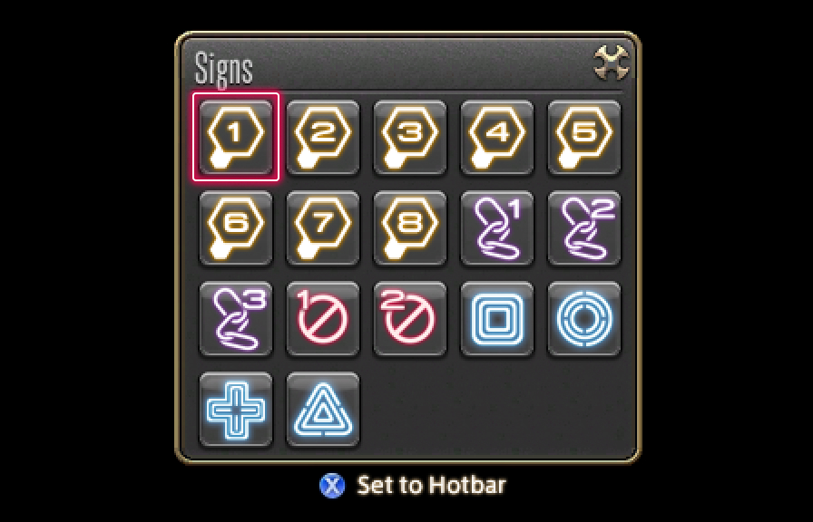 Highlight a sign and press X (□ on PS5™/PS4™, X on Xbox Series X|S) to set it to a hotbar.