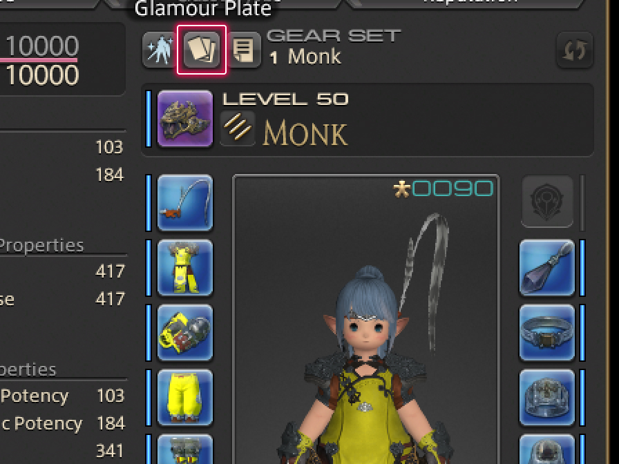 Glamour plates can be used not only in inn rooms, but in sanctuaries and anywhere within large cities and residential areas. When available, you can press the Glamour Plate button above the character window to view and select a glamour.
