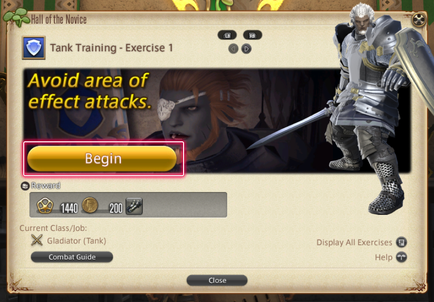 Once the Hall of the Novice is unlocked, training exercises for each role (Tank, Healer, and DPS) become available. To take those exercises, be a class for the training you wish to take and speak with the same NPC.