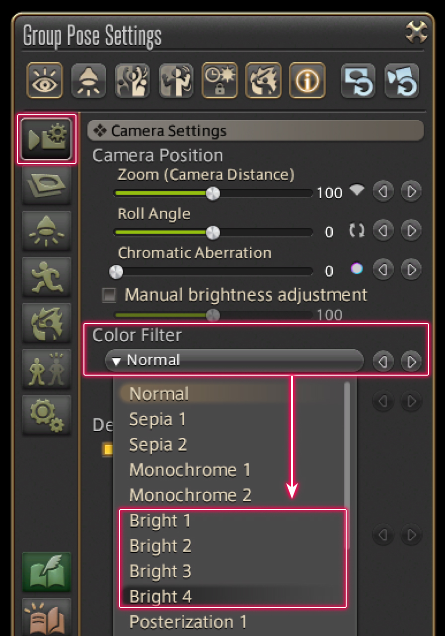 To take vibrant tone screenshots, select a Bright filter under Color Filter in the General Settings tab.