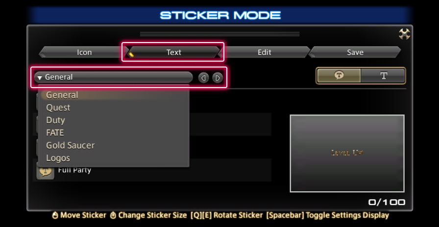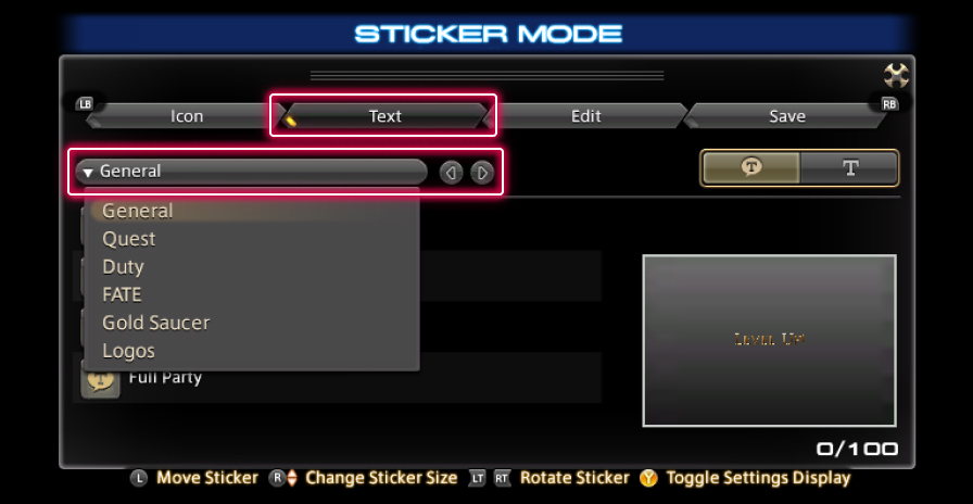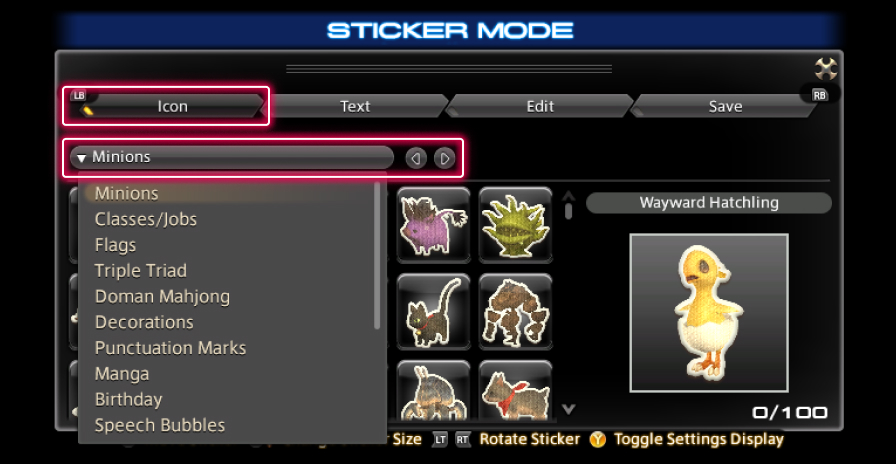 For minion, meal, decoration, or speech bubble stickers, select the Icon tab. For text stickers, select the Text tab.
