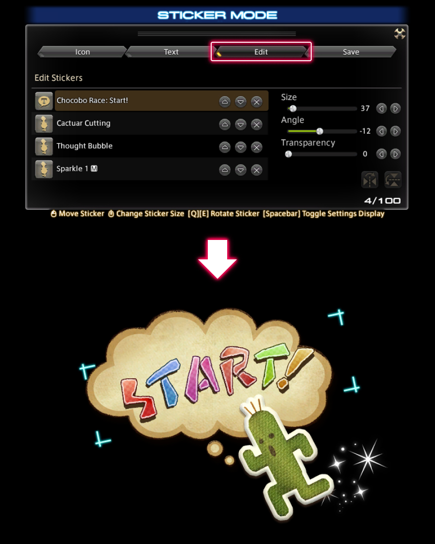 Sticker size, angle, transparency and display order can be adjusted in the Edit tab. Enjoy decorating your screen as you like!
