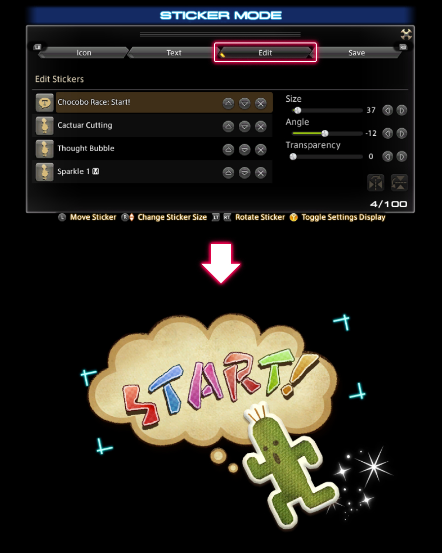Select the Edit tab and then choose a sticker from the list under Edit Stickers.